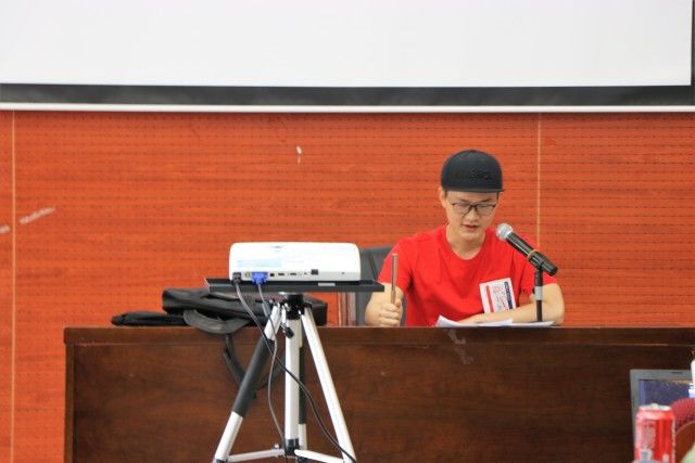 最后发言的是第五组的代表杨靓靓, 他们的作品以一首长诗做卷首语,围绕洱海治理问题,用老式胶片方式放映了一组关于洱海蓝藻问题的漫画,并提出了配有具体操作的方案。“打捞海藻”“藻水同 治”“禁渔”“关停客栈”这四个措施后分别讲述了洱海卫士董纳顺等人的故事,使我们了解到了人类为治理环境做出的努力。